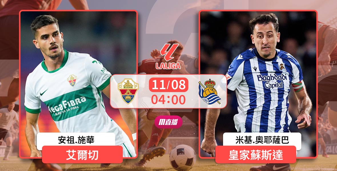 週六凌晨,西甲第十二輪先戰一場,由艾爾切主場迎戰皇家蘇斯達,M直播屆時將會有本場賽事的現場直播。艾爾切遭遇4輪聯賽不勝,反觀皇蘇斬獲各項賽事三連勝,更何況雙方近年交鋒呈一面倒之勢,皇蘇此行劍指勝利。